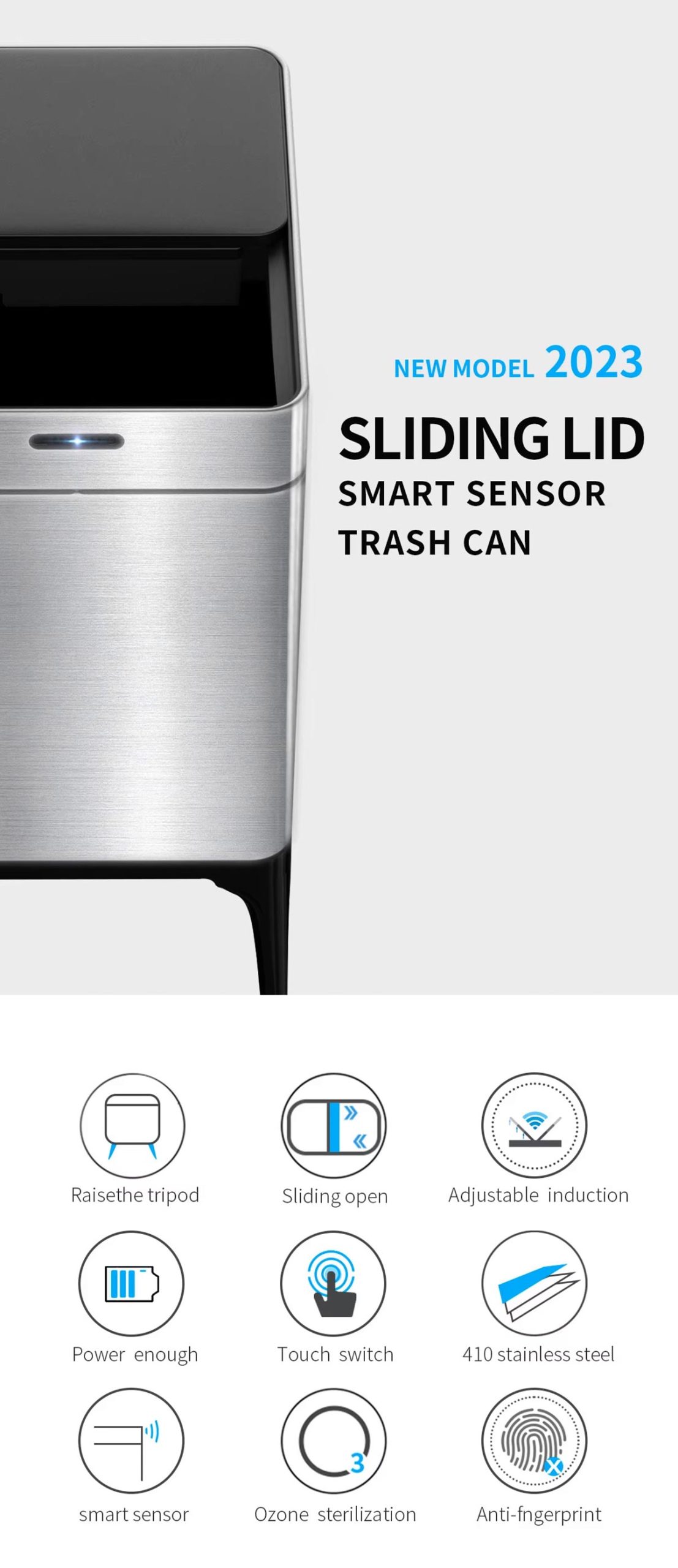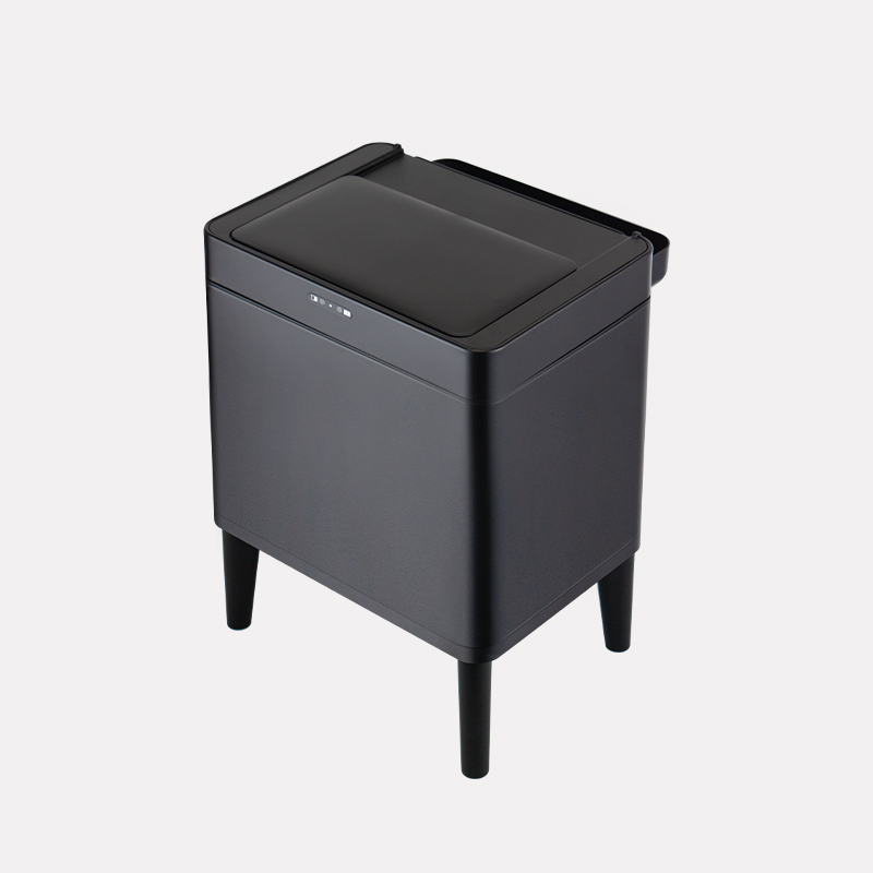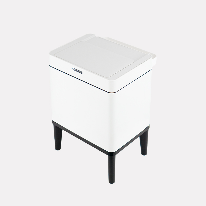 The HN-ZT sensor bin, made of stainless steel and ABS, features a built-in ozone generator, sliding & silent opening, and an optional foot stand, ideal for under-desk placement in offices.