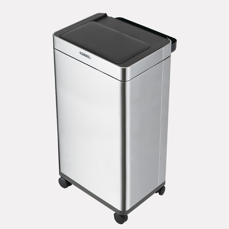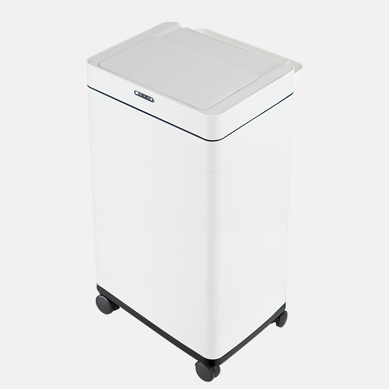 The HN-ZT sensor bin, made of stainless steel and ABS, features a built-in ozone generator, sliding & silent opening, and an optional foot stand, ideal for under-desk placement in offices.