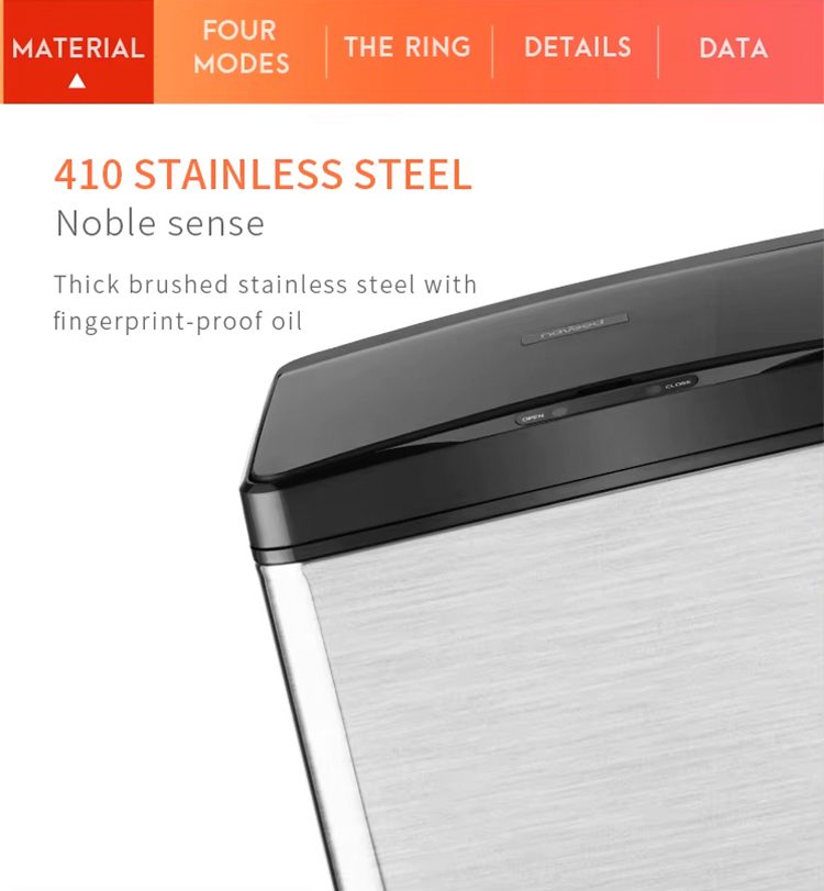 The HN-ZS02 features a slender barrel design with an extra wide 85 opening for easy disposal, and an optional foot stand for customized elevation and enhanced floor cleaning access. It includes a smart sensor lid with four operation modes and is made of stainless steel and ABS. Available in 22L, 30L, 42L, and 50L capacities, its space-saving form fits seamlessly into corners and tight spaces. The product is certified by CE, RoHS, and ISO 9001.