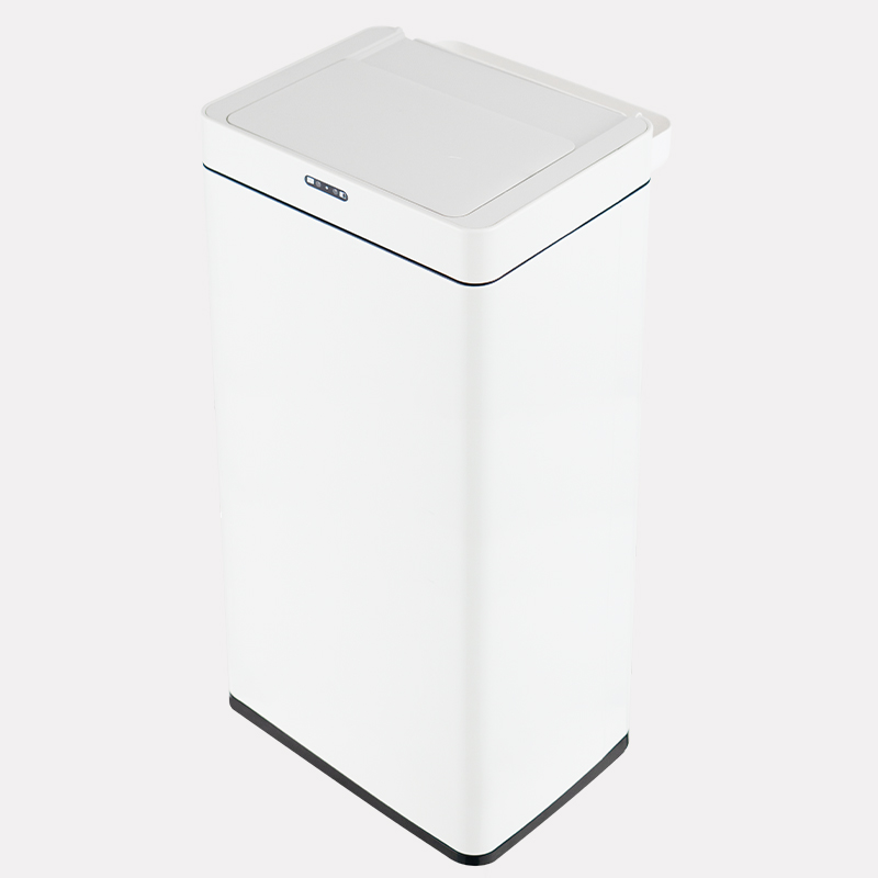 The HN-ZT sensor bin, made of stainless steel and ABS, features a built-in ozone generator, sliding & silent opening, and an optional foot stand, ideal for under-desk placement in offices.